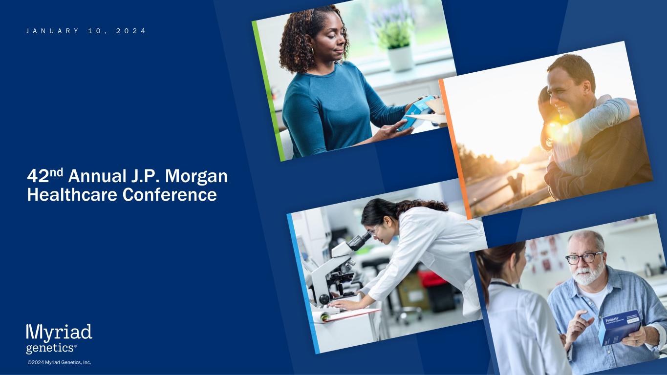 On January 10, 2024, Myriad Genetics, Inc. (the “Company”) provided a presentation to investors at the 42nd Annual J.P. Morgan Healthcare Conference, which presentation was previously announced by press release and was available via simultaneous webcast. In connection with the presentation and based on the Company’s preliminary results for the quarter and full year ended December 31, 2023, the Company reaffirmed its fiscal year 2023 revenue and non-GAAP guidance previously provided on November 6, 2023 during its third quarter 2023 earnings call. In addition, the Company reaffirmed its guidance that it is on track to achieve positive adjusted operating cash flow in the fourth quarter 2023 and provided guidance on estimated cash, cash equivalents and available credit as of the end of 2023. The full text of the presentation is furnished as Exhibit 99.1 hereto and incorporated herein by reference.