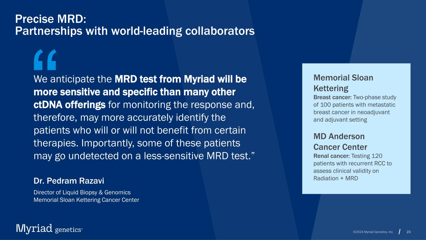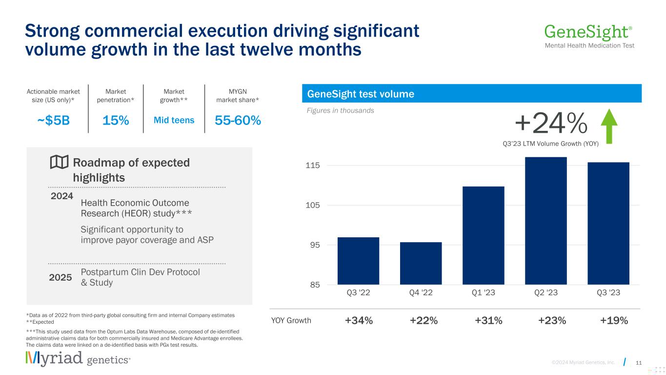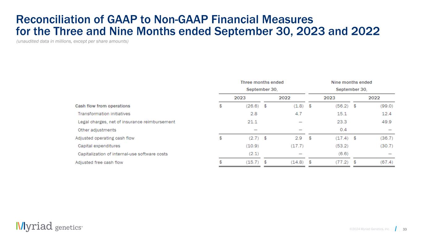 This Current Report on Form 8-K and Exhibit 99.1 contain “forward-looking statements” within the meaning of the Private Securities Litigation Reform Act of 1995, including, but not limited to, the Company’s fiscal year 2023 financial guidance, preliminary fourth quarter 2023 financial and operating results, 2024 revenue guidance and long-term financial targets through 2026, the Company’s expectation to achieve positive adjusted operating cash flow in the fourth quarter of 2023, the Company's expectation of 10%+ revenue growth in 2024 through 2026, the Company’s estimated total available cash and credit at year end 2023, roadmaps of expected business highlights in 2024 and 2025, the expected timeline to complete certain enterprise infrastructure and capability investments, and the expected timing of the launch or enhancement of certain new or existing products. These “forward-looking statements” are management’s present expectations of future events as of the date hereof and are subject to a number of known and unknown risks and uncertainties that could cause actual results, conditions, and events to differ materially and adversely from those anticipated. These risks include, but are not limited to: the risk that sales and profit margins of the Company’s existing tests may decline or that the Company may not be able to operate its business on a profitable basis; risks related to the Company’s ability to achieve certain revenue growth targets and generate sufficient revenue from its existing product portfolio or in launching and commercializing new tests to be profitable; risks related to changes in governmental or private insurers’ coverage and reimbursement levels for the Company’s tests or the Company’s ability to obtain reimbursement for its new tests at comparable levels to its existing tests; risks related to increased competition and the development of new competing tests; the risk that the Company may be unable to develop or achieve commercial success for additional tests in a timely manner, or at all; the risk that the Company may not successfully develop new markets or channels for its tests, including the Company’s ability to successfully generate substantial revenue outside the United States; the risk that licenses to the technology underlying the Company’s tests and any future tests are terminated or cannot be maintained on satisfactory terms; risks related to delays or other problems with constructing and operating the Company’s laboratory testing facilities; risks related to public concern over genetic testing in general or the Company’s tests in particular; risks related to regulatory requirements or enforcement in the United States and foreign countries and changes in the structure of the healthcare system or healthcare payment systems; risks related to the Company’s ability to obtain new corporate collaborations or licenses and acquire or develop new technologies or businesses on satisfactory terms, if at all; risks related to the Company’s ability to successfully integrate and derive benefits from any technologies or businesses that it licenses, acquires or develops; the risk that the Company is not able to secure additional financing to fund its business, if needed, in a timely manner or on favorable terms, if it all; risks related to the Company’s projections or estimates about the potential market opportunity for the Company’s current and future products; the risk that the Company or its licensors may be unable to protect or that third parties will infringe the proprietary technologies underlying the Company’s tests; the risk of patent-infringement claims or challenges to the validity of the Company’s patents; risks related to changes in intellectual property laws covering the Company’s tests, or patents or enforcement, in the United States and foreign countries; risks related to security breaches, loss of data and other disruptions, including from cyberattacks; risks of new, changing and competitive technologies in the United